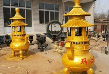 平口鍍金仿古香爐,為寺廟和戶外添彩