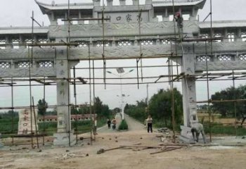 村口的大型大理石石雕牌坊