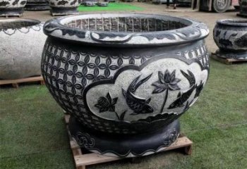 古典庭院裝飾-青石浮雕水缸荷花雕塑