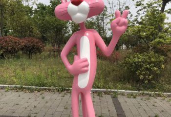 可愛彩繪玻璃鋼雕塑——粉紅豹