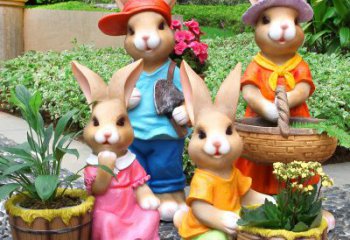 可愛小兔子玻璃鋼雕塑,點綴園林景觀